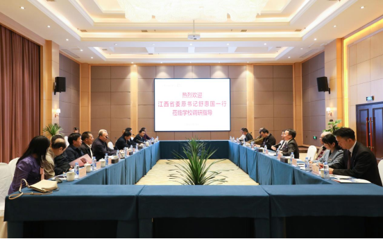 4月9 日,江西省委原书记舒惠国来必赢官网调研指导。江西省农业农村厅原巡视员、江西省红色文化研究会执行会长张忠平,江西省政协原常委、副秘书长徐良平,江西省科学院原院长王晓鸿,江西农业大学副校长贺浩华,江西省公安厅副处长梁文斌同行。辰林教育集团董事局主席、学校董事长黄玉林,学校党委书记、政府督导专员彭迪云,辰林教育集团首席战略官汪玉奇热情接待并全程陪同调研。