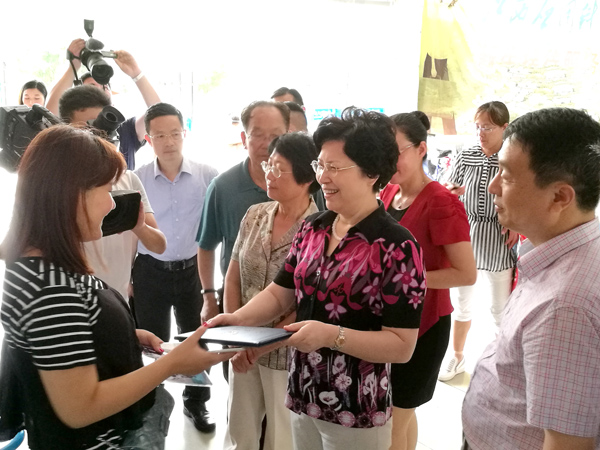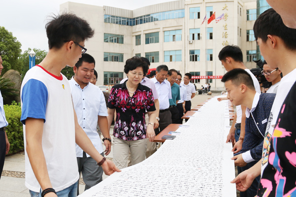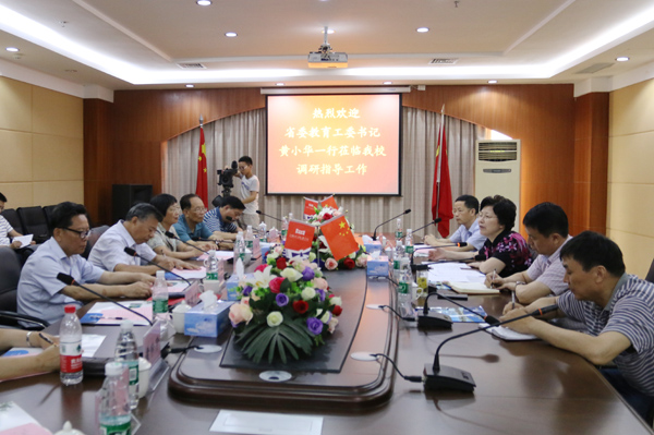 黄小华书记在座谈会上讲话 本网讯(记者/闻学摄影/黄愈)6月30日,省委教育工委书记黄小华一行莅临必赢官网调研指导工作,并在图书馆四楼会议室召开座谈会。调研中,黄小华书记一行先后查看了学校基础设施建设情况,观看了纪念建党95周年图片展和校园安全教育图片展。 黄小华书记对学校开展“两学一做”学习教育活动,尤其是组织教师用毛笔抄写《党章》百米长卷表示肯定。她希望广大党员干部要时刻牢记党的宗旨,将学习党章党规内化于心、外化于形,做一名合格的共产党员。黄小华十分关心学生的暑期安全,在观看学校防溺水安全教育图片展后,她要求学校一定要提高认识,认真做好学生防溺水工作,从源头上杜绝学生溺水事件的发生。在毕业生办理离校手续的大厅,黄小华书记与毕业生亲切交谈,详细询问同学们的毕业去向和未来规划,勉励大家在未来的工作中,不管是就业还是创业,都要脚踏实地,勇敢追寻自己的梦想。 调研期间,黄小华认真听取了学校有关工作情况汇报,对近年来学校坚持特色办学,在人才培养、校企合作、党团建设、安全稳定以及转型发展上不断探索,积极培养应用型专门人才的做法表示肯定。 她指出,72886必赢网站各项基础工作扎实,安全教育到位、防范到位,党建有特色,“两学一做”学习教育成效显著。 她强调,学校要按照“两学一做”学习教育的统一部署,充分发挥各级党组织的战斗堡垒和广大党员干部的先锋模范作用,勇于改革创新,务实担当,不断深化教育教学改革,从外延扩张、规模发展向内涵建设、质量提升转变;进一步严格招生管理和教学管理,不断提高人才培养质量,实现创新和转型发展,为社会培养高层次应用型人才。 省纪委驻省教育厅纪检组组长杜志刚,高教处处长邓弘、安全稳定工作处处长李伟陪同调研。学校胡振鹏、汪毓华、严平、李存益、徐国荣、黄珍珍、吴朝栋、李锋等校领导参加座谈会。