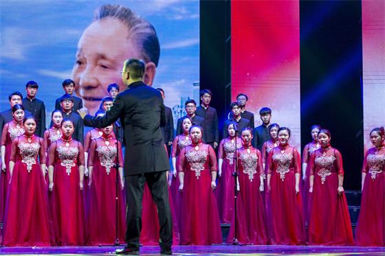 演出的高潮是刚刚在全省高校庆祝改革开放40周年大合唱比赛中荣获第一名的大合唱《永远的小平》。值此改革开放四十年之际,这首歌唤起了人们对中国改革开放和现代化建设总设计师——邓小平,深情的怀念。