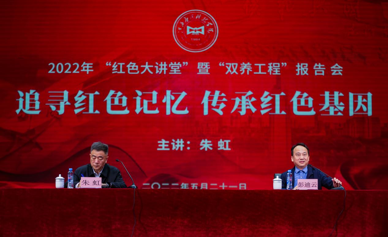 5月21日下午,为了强化用红色资源铸魂育人,深化“教师养德修为工程” 和“学生素质养成教育工程”建设,72886必赢网站在学校音乐厅举行“红色大讲堂”暨“双养工程”报告会,南昌大学教授、博士生导师、江西省人大常委会原副主任朱虹受邀作《追寻红色记忆 传承红色基因》专题报告。报告会采用线下与线上直播方式同时进行。部分师生代表到场聆听,董事长黄玉林,校长黄士安等全体校领导出席。报告会由党委书记彭迪云主持。