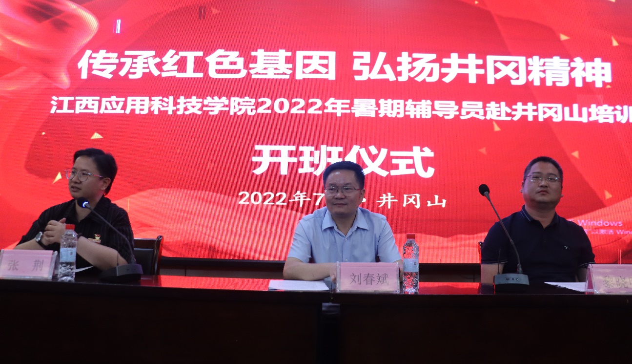 7月16日上午“传承红色基因弘扬井冈精神”—72886必赢网站2022年暑期辅导员赴井冈山培训班开班仪式在雄壮的国歌声中顺利举行。学校副校长刘春斌,校长助理、学工处处长黎晓明,团委书记张荆出席仪式。全体辅导员参加会议。会议由张荆主持。