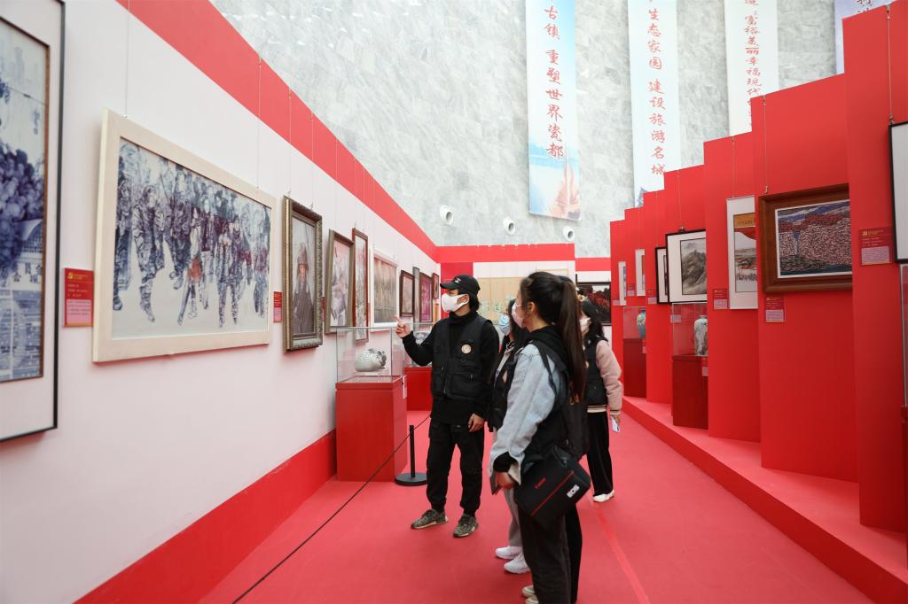 记者团成员参观中国陶瓷博物馆“红色文化”陶瓷作品展