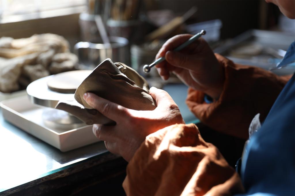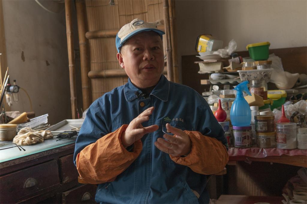 汪镜明老人接受寻访小队的采访时表示,自己是土生土长的景德镇人,从事陶艺工作至今已有二十余年,致力于创意型陶艺的制作与发展。平时,他从陶艺的创作中汲取自己的精神食粮,生活的方方面面都充斥的陶瓷的身影,真正做到了“因为热爱,所以坚守”。他强调,陶瓷文化历史悠久,源远流长,是中国优秀的传统文化之一,而红色文化作为江西文化中的一大特色,深深的融入了景德镇的陶瓷文化之中。