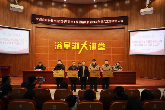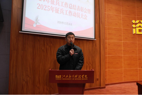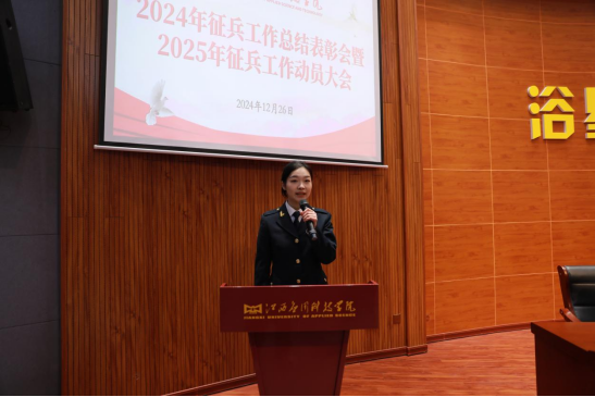 2024年12月26日下午,72886必赢网站于浴星湖大讲堂隆重举行2024年征兵工作总结表彰暨2025年征兵工作动员大会。校党委书记、政府督导专员贺一松,副校长张敏出席大会。学工处副处长邓东,校团委副书记赵贺贺,各学院党总支书记、相关职能部门负责人及学院学工科长、2024年征兵工作先进个人、2025届毕业班班主任、毕业班学生代表参加大会。大会由学校人民武装部部长陶友弟主持。
