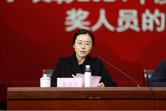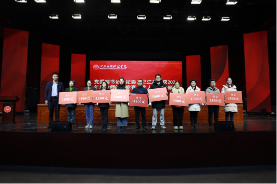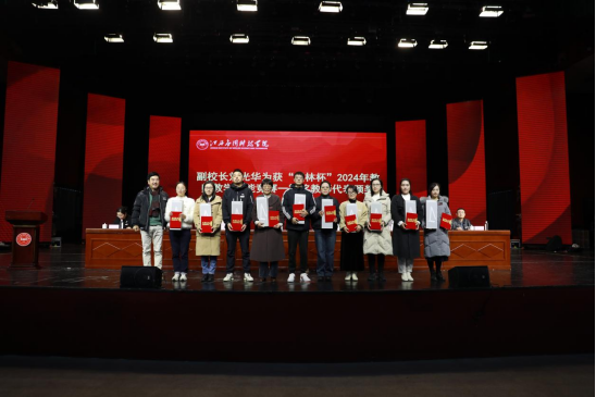 房小珍宣读《关于表彰2024年度教师教学竞赛获奖人员的决定》,江星为获奖代表颁奖。