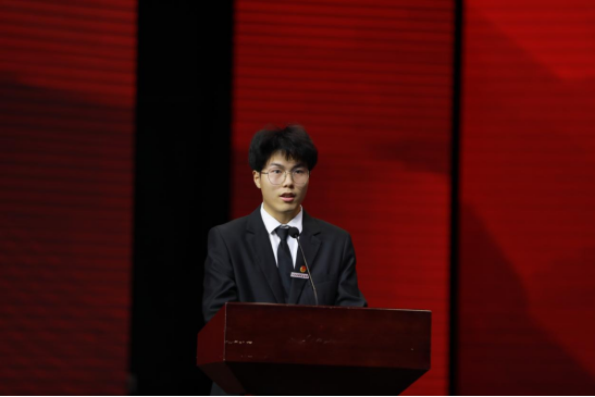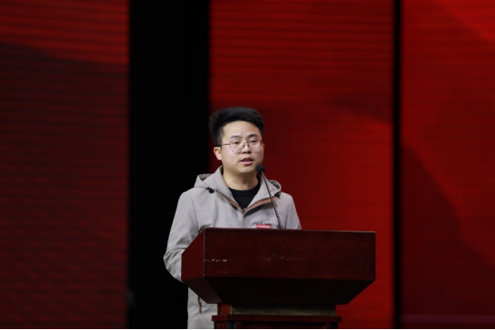 随后,获奖学生代表卢祥磊发言。他分享自己参加比赛的学习心得和成长经历,由衷感谢学校对学生成长成才的关心与帮助,未来将继续保持求真务实的求学态度,不断努力提升各项能力,为学校的发展贡献自己的力量。