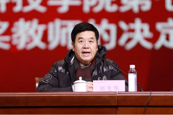 谢远健宣读《关于表彰“辰林杯”2024年教师教学技能竞赛获奖教师的决定》,刘光华为获奖代表颁奖。