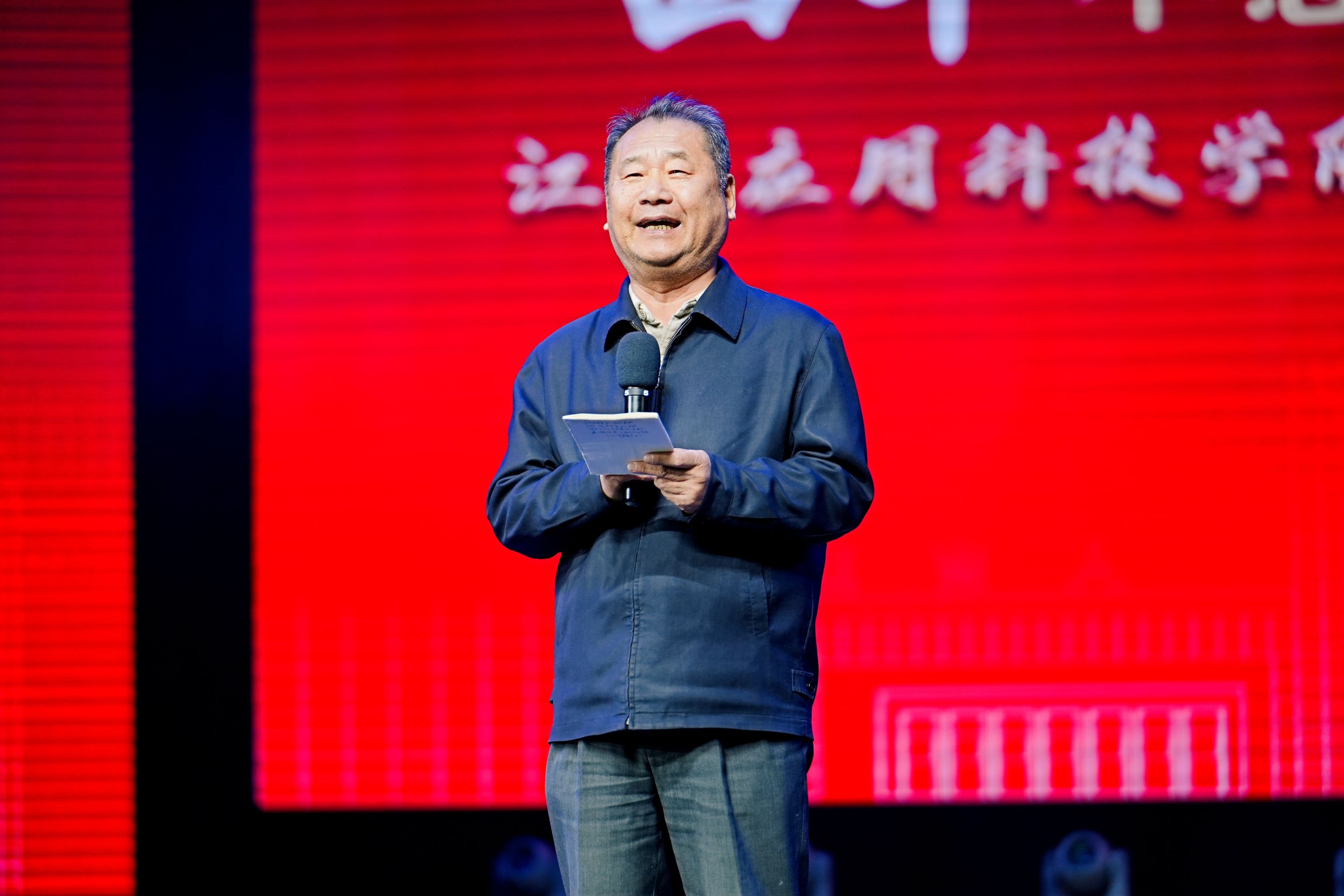 晚会在汪玉奇现场作诗中推向高潮,现场掌声雷动,他为学校办学40周年献上祝福: