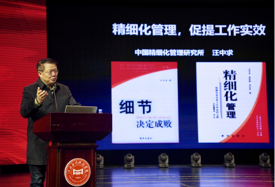 开班仪式后,中国精细化管理研究所所长汪中求作题为《精细化管理促提工作实效》的主题报告。他用大量案例、数据,对精细化管理的内涵、重要性以及在学校管理中的应用进行了详细授课。针对学校所面临的痛点问题给出了宝贵的建议,有很强的指导性和可操作性。