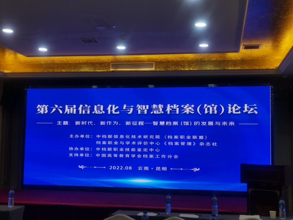 第六届信息化与智慧档案(馆)论坛于8月10日——15日在昆明举办。本届论坛主题“新时代、新作为、新征程一一智慧档案(馆)的发展与未来”。论坛分大数据与档案数字化建设、智慧档案馆发展路径及趋势分析等9项内容。