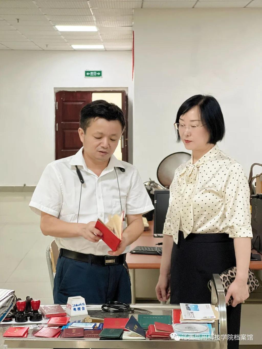 胥懋云副校长首先查看了校史馆实物档案,了解校史馆建设中实物档案征集情况。自今年四月以来,档案馆一共收集到实物和文献材料2000余件,其中可供实物展示的约900余件,已全部拍照归档。胥校长认真听取了档案馆馆长聂立新对每一件实物档案的历史背景、历史意义、收集过程的讲解。胥校长对档案馆在短期内对新校史馆实物和文献资料收集工作取得的成效给与了肯定,鼓励全馆工作人员再接再厉,再创佳绩。