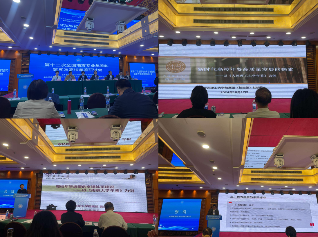 本次会议由中国出版协会年鉴工作委员会主办,中国出版协会年鉴工作委员会地方专业年鉴工作部、高校年鉴工作部承办。大连理工大学、大连莱恩文化会展有限公司协办。中国出版协会年鉴工委会会长、副会长、顾问等相关人员,地方专业年鉴工作部和高校年鉴工作部主任、副主任,地方专业年鉴和高校年鉴单位代表100余人参会。会议期间中国出版协会年鉴工作委员会副主任,上海交通大学档案文博管理中心主任张凯作了题为《地方年鉴高质量发展》、《高校年鉴编纂创新与利用拓展》的报告,大连理工大学档案馆(校史馆)馆长刘晓梅作了题为《新时代高校年鉴高质量发展的探索》的报告、南京大学档案馆馆长作了题为《高校年鉴编纂的支撑体系建设》的报告,北京市教育档案馆馆长赵长顺、四川交通运输厅交通档案服务中心编辑部副主任王谦也作了相关报告。