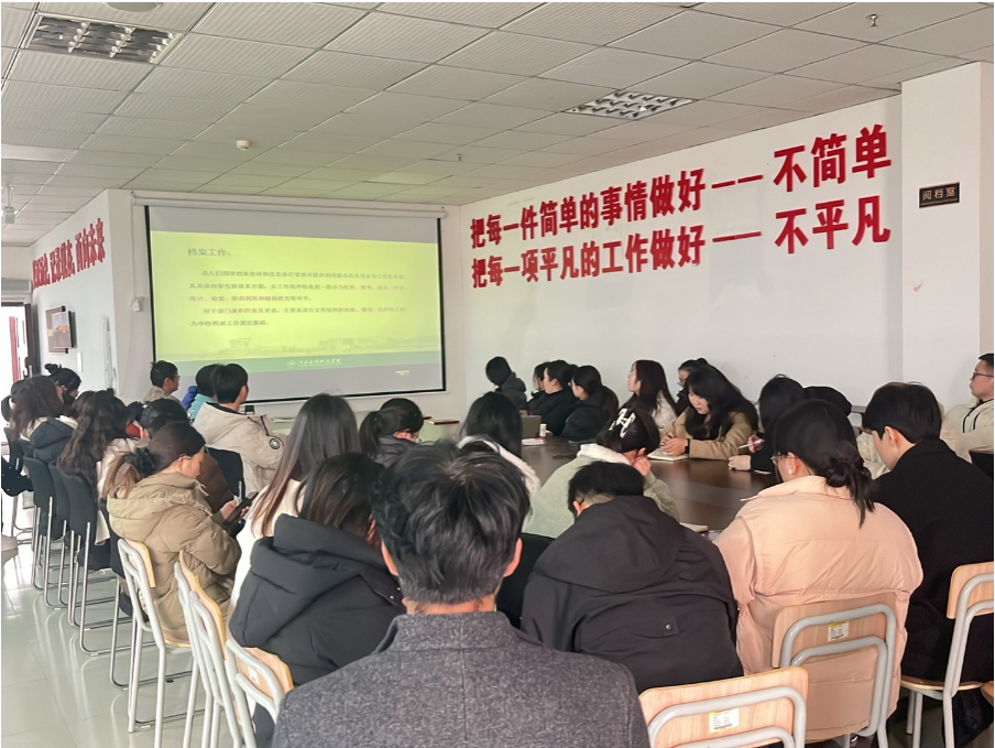 首先图书与档案信息中心副主任章华斌结合档案工作讲话,指出档案工作是学校管理的重要组成部分,它记录了学校的发展历程,为学校的教学、科研、管理等各项工作提供了重要的依据和参考。是促进学校规范发展不可或缺的一个环节。近几年档案工作不断推进,各部门高度重视,密切联系相互配合,取得一定成效,更离不开专兼职档案员辛苦付出。新时代下,要进一步深刻领会习近平总书记对档案工作的重要批示,把档案工作当成一项功在当代利在千秋的重要工作,把档案工作收集好、整理好、保管好、利用好,奋力推动档案工作提质增效,为学校事业发展、广大师生做好服务。会议还对2024年度档案收集归档工作做了部署。
