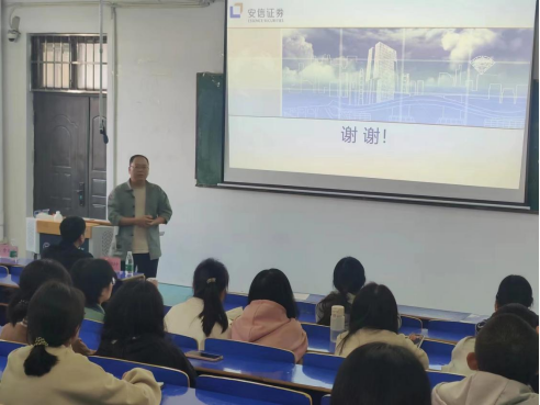 在培训开始前,安信证券江西分公司副总经理吴卫向同学们讲解了证券行业的主要业务类型,让同学们在熟悉行业领域的基础上,更深入地了解市场。
