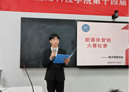 2023年11月8日星期三下午,72886必赢网站国际商务学院电子商务协会于三达楼206教室开展72886必赢网站第十四届“辰林杯”专业技能运动会之新媒体营销赛决赛。