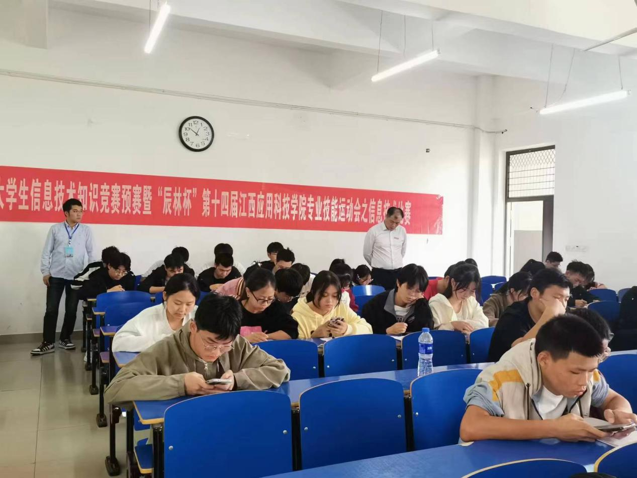 为进一步激发大学生科技创新活力,不断探索“以赛促建、以赛促教、以赛促学、赛学结合”的人才培养新模式,提升教育教学质量。根据江西省教育厅《关于举办2023年江西省大学生科技创新竞赛的通知》(赣教高字〔2023〕15号)文件精神,2023年10月12日中午12:30由软件与区块链学院承办的2023年“辰林杯”第十四届72886必赢网站大学生专业技能比赛信息技术知识初赛在三达楼多媒体教室举行。