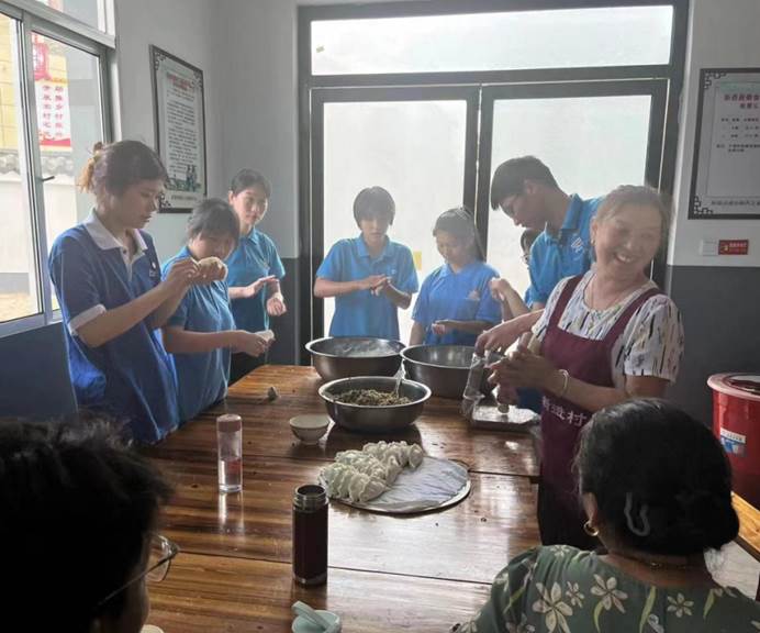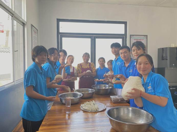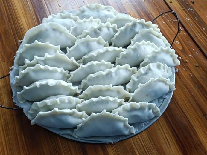 包制过程像是包饺子,做法雷同,除了个头大小差异就没两样了。大家经过不断的尝试,从馄饨包子模样到花纹蒸米粑,从露馅不稳到圆润饱满,慢慢就熟练掌握新一手的厨艺特色,这样融洽的乡情,我们与新进村温馨似一家。