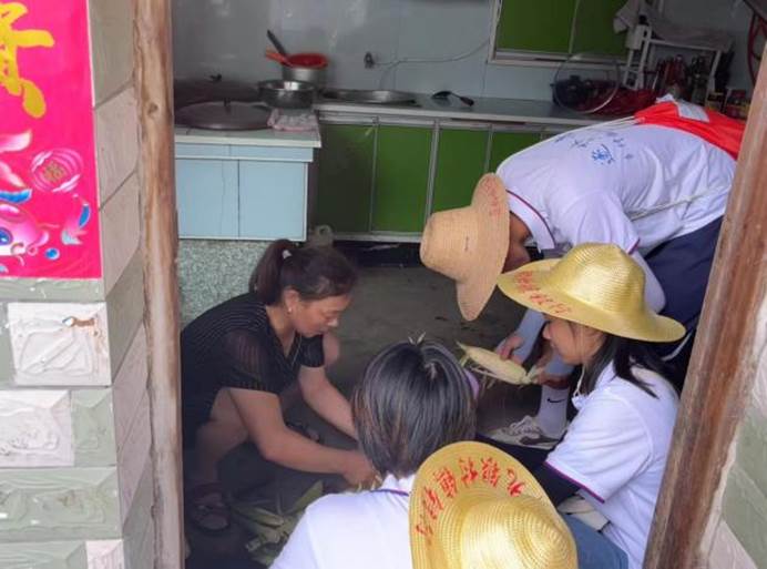 逐梦青年团成员们在房屋普查的过程中,遇到了在颐养之家做饭的阿姨并请我们去她家休息,成员们在帮忙剥玉米衣。值得一提的是,我们并不知道这其实是阿姨为我们准备的,刚出锅的玉米虽然烫手,但这细处的关心却温暖着我们每一个人。
