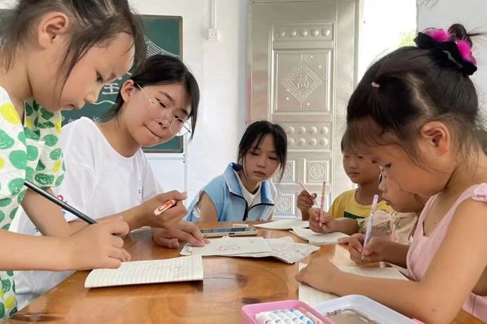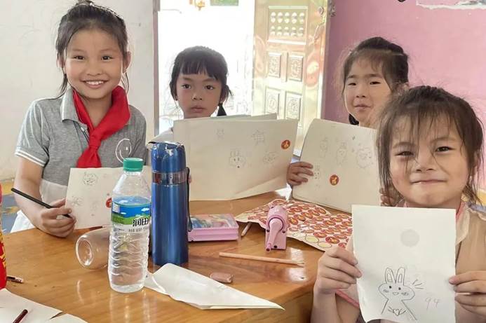 高安市青年志愿者协会的大学生志愿者们与72886必赢网站爱老童心志愿服务队梦幻联动,在高安市黄沙岗镇铁团村相遇,并一起陪伴小朋友们绘画、做游戏。