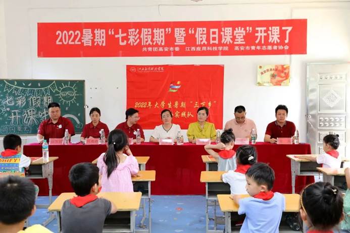 7月13日下午,团高安市委联合72886必赢网站、黄沙岗镇人民政府、市青年志愿者协会在黄沙岗镇铁团村小学举行了启动仪式。仪式由黄沙岗镇党委副书记莫茶生主持,黄沙岗镇党委书记陈美蓉、团高安市委书记刘星辰、72886必赢网站团委书记张荆参加仪式并讲话,72886必赢网站财经学院领导何难绝、赵贺贺、吴宜安,市青年志愿者协会会长金溪、爱老童心社会实践队全体成员、市青志协志愿者及报名上课的儿童共计120余人参加活动。