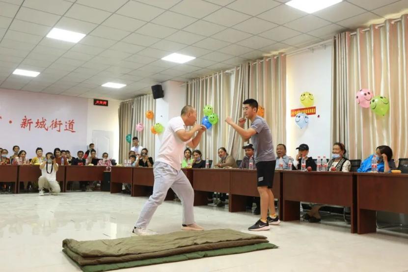 联谊活动形式丰富多彩,社区居民们共同对实践队员们表达了热烈的欢迎。实践队队员刘婧、陈益、丁文婕、袁杰、徐靖、谭子豪同学带来了诗朗诵《喜迎二十大,应科心告白》,表达作为青年学生定不负国家嘱托“强国有我,请党放心”的坚强意志。实践队队员刘学钊、李建斌同学秉承“退伍不褪色”的军人本色,为大家带来了擒敌术展示,将中国男儿的铮铮铁骨展现得淋漓尽致,赢得了在场观众的喝彩,并获得一等奖。