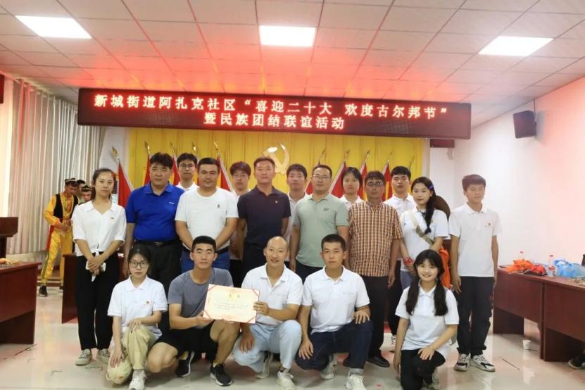 为进一步促进民族团结,铸牢中华民族共同体意识,让辖区群众度过一个愉快、祥和的节日,新城街道阿扎克社区组织举行“喜迎二十大,欢度古尔邦节”暨民族团结联谊活动,“赣青赴疆”民族团结实践团队员们受邀参加。