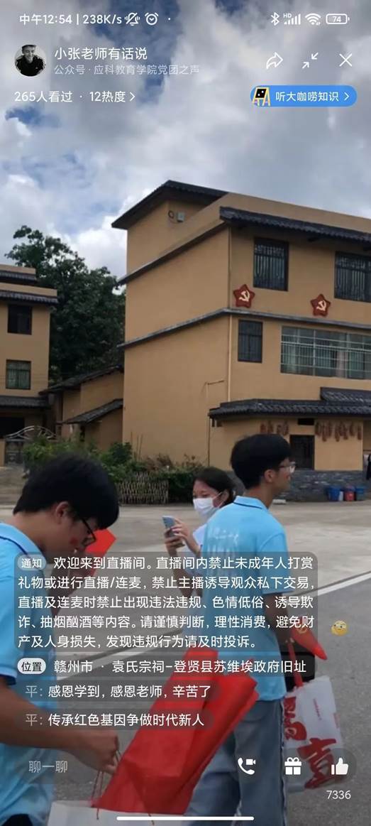 同时,上述活动均通过视频直播的方式,让学院其他的师生通过云端相聚于都,全体师生实现同步,扩大覆盖面。通过镜头踏寻红色记忆,感悟长征精神。