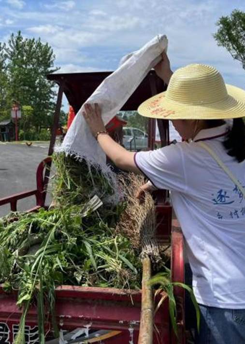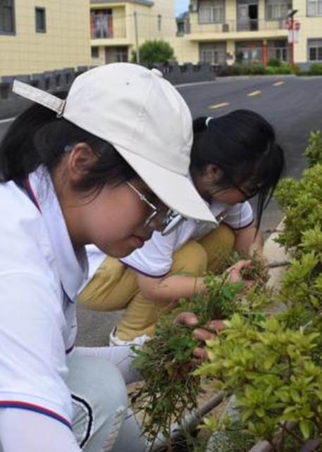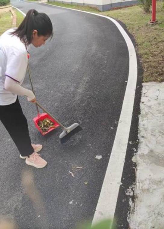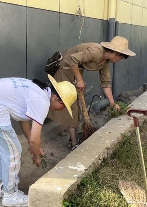 队员们用双手和工具认真地在绿化带、空地等地方清除杂草,并帮助一位94岁的奶奶减轻劳动负担,且记录下了美好的一刻。