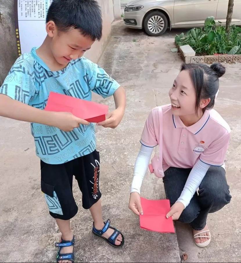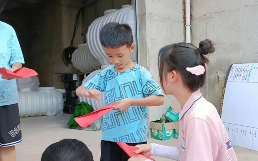 队员们走进社区,走进居民生活,与社区小朋友一同开展“放飞梦想”活动。队员们为孩子们讲解了纸飞机制作方法和细节。“首先将长方形的一条短边,和一条长边重合折叠、压实。”孩子们边听边折,积极发挥自己的想象力和创造力,感受手工制作的魅力。最后,宣讲团队员们带领大家来到社区门口进行放飞比赛,纸飞机腾空而起,载着孩子们的美好祝愿和憧憬飞向天空。