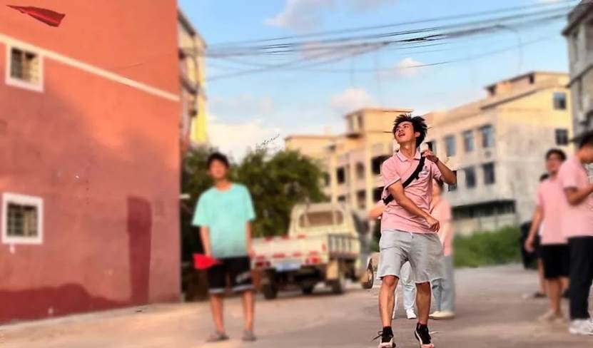 “123,飞!”载着小朋友美好祝愿的纸飞机飞向天空。