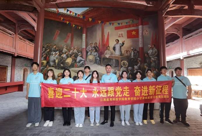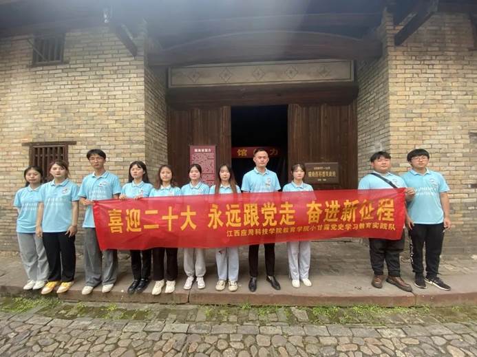 为深入学习宣传贯彻习近平新时代中国特色社会主义思想,贯彻落实习近平总书记关于青年工作的重要思想,引导和帮助广大青年学生上好与现实相结合的“大思政课”,在社会课堂中受教育、长才干、作贡献,坚定信念听党话、跟党走,迎接党的二十大胜利召开,在观察实践中学党史、强信念、跟党走, 努力成为担当民族复兴大任的时代新人,以实际行动为实现江西高质量跨越式发展贡献蓬勃青春力量,72886必赢网站教育学院开展“喜迎二十大,永远跟党走,奋进新征程”暑期“三下乡”社会实践活动,以“党史学习实践”为主题,组建了由全国抗击新冠肺炎疫情青年志愿服务先进个人、学院团总支书记张伟健与13名青年大学生一起的小甘露党史学习教育实践队,来到中央红军万里长征集结出发地—于都县,开展重走红色足迹、追溯红色记忆、访谈红色人物、挖掘红色故事、体悟红色文化等多种形式活动,引导青年学生学史明理、 学史增信、学史崇德、学史力行,更好地传承红色基因、担当时代责任!