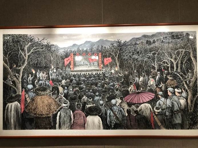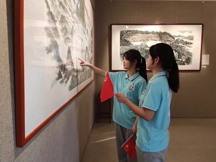 一幅幅见证光荣的红色于都史的书画作品,随着文化馆老师的解说,让大家更加了解于都千年来的历史变迁、深厚的文化底蕴和如流星般灿烂的名人事迹。一幅画就是一个红色故事,作者以书画艺术为载体,把党史故事融入书画中,向大家展现波澜壮阔的长征那向死而生的开笔,展现红军战士们历久弥坚的初心使命。