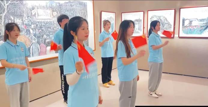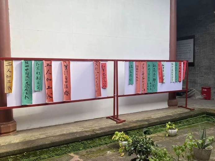 在文化馆二楼,实践队一行观看了翰墨长征源书画展。书画展以于都县两千多年的历史文化发展为主线,以古田坪、罗田岩、需岩等历史文化遗迹和各红色革命旧址、长征八大渡口为主要创作内容,用画笔讴歌千年古县、长征出发地于都历史文化的荣光,抒发热爱党、热爱祖国、热爱于都历史的炽热情感,宣扬伟大的长征精神,启迪人们要走好新时代的长征路。