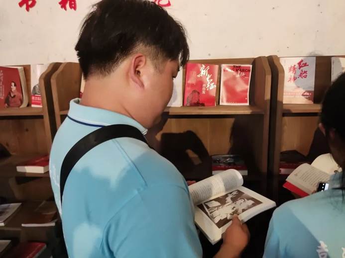 随后,实践队一行队来到赣南省苏维埃政府旧址暨长征前夕毛泽东同志旧居—何屋,共同回顾党的光辉历程,激发大家的爱党之情、报党之恩、为党之志。该旧址在2006年被评为全国重点文物保护单位,1934年7月,赣南省成立,省苏维埃政府在此办公,下设土地部、粮食部、工农检查部、妇女部等十多个工作部门。1934年9月中旬,毛泽东从瑞金云石山来到于都,住在何屋的东厢房,在此期间,他经常深入群众调查研究,检查指导了赣南省的各项工作。1934年10月18日,毛主席离开何屋,随同中央直属机关度过于都河,迈开了两万五千里长征的第一步。在毛泽东同志旧居,全体队员们在团总支书记张伟健的带领下参观了当年革命先辈的住所和相关文字记载资料,认真学习党史知识。在这样艰苦的环境下一件件物品似乎都在诉说着当年的故事。一件件文物和一张张照片生动的再现了毛泽东当时在于都从事革命活动等重要历史活动的情形。