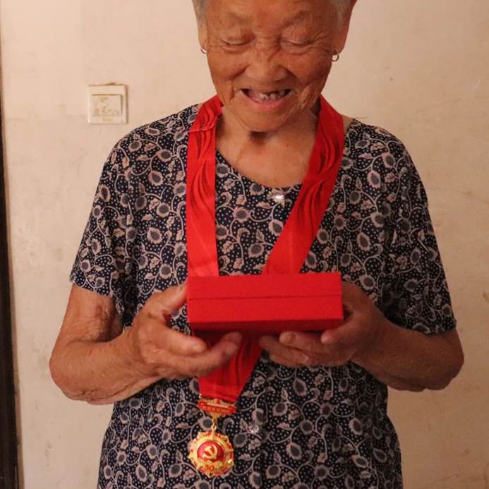 万兰花老人向我们展示了50党龄的纪念章。有很多老党员和万兰花老人一样数十年如一日爱党、护党,他们历经风雨理想信念不移,他们激励着广大党员干部在新时代中凝聚力量、砥砺前行。他们用一生践行“听党话、跟党走”的忠诚誓言,以实际行动喜迎党的二十大!
