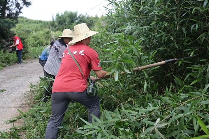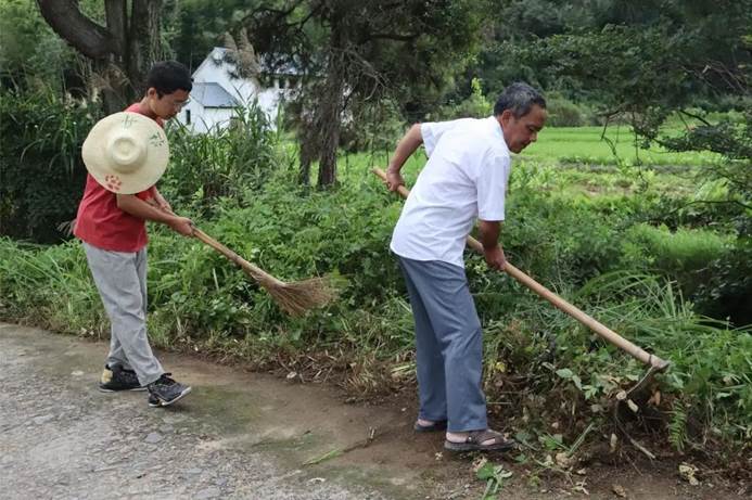 在古田村的公路旁,有一条狭窄的小路,联系着村与村之间的沟通与交流。为方便村民的出行。今天下午,实践队队员带上锄头、扫帚和镰刀与村里的党员干部一起为村内的小路除草。