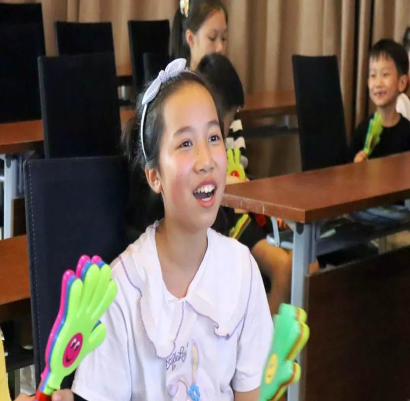 遇到小朋友难以传唱歌词,队员们逐词逐句拆解,以跟唱的方式反复教授,从晦涩难理解到熟悉跟唱出口,一首《Twinkle Twinkle Little Star》悄然在小朋友歌唱的旋律里,唱准了词,唱出了声。