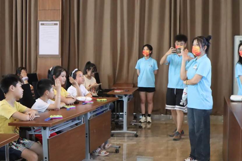 实践团成员们以一首“社交神曲”《孤勇者》,迅速拉近了和小朋友之间的距离。就这样,一场别开生面的课堂在孩子们洋溢的笑容里和激昂奋进的歌声中展开了序幕。