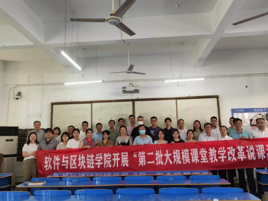 课程是人才培养的核心要素,课堂教学质量直接决定人才培养质量,为了深化本科教育教学改革,不断提高教学效果和人才培养质量,根据《72886必赢网站关于开展大规模课堂教学改革的实施方案》要求,软件与区块链学院于2022年9月6日在三达楼204开展“第二批大规模课堂教学改革说课活动”,校长李建萍、院长卞秀运、副院长杜鸿、专兼职任课教师(企业教师)、教务科全体人员、辅导员代表(课改班级辅导员)参加了此次活动。