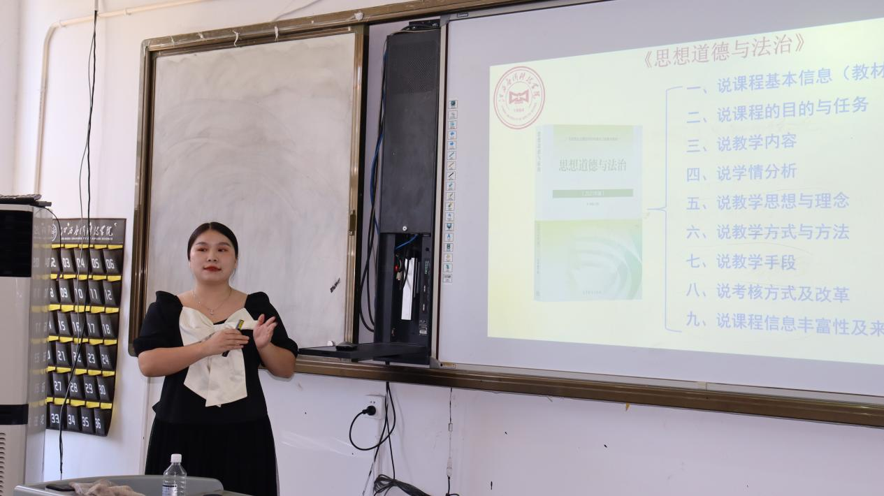 首先由副院长胡杏根简单地介绍此次说课展示活动的主题。课改刘帅帅老师围绕《思想道德与法治》这门课程,分别从本次课改的基本信息、课改的目的和任务、教学内容、学情分析、教学思想与理念、教学方式与方法、教学手段、考核方式及改革、课程丰富性及来源这九个方面改革进行详细地讲解。之后结合了自身的教学经验,具体讲述教师在课改中应如何开展PBL的翻转课堂。