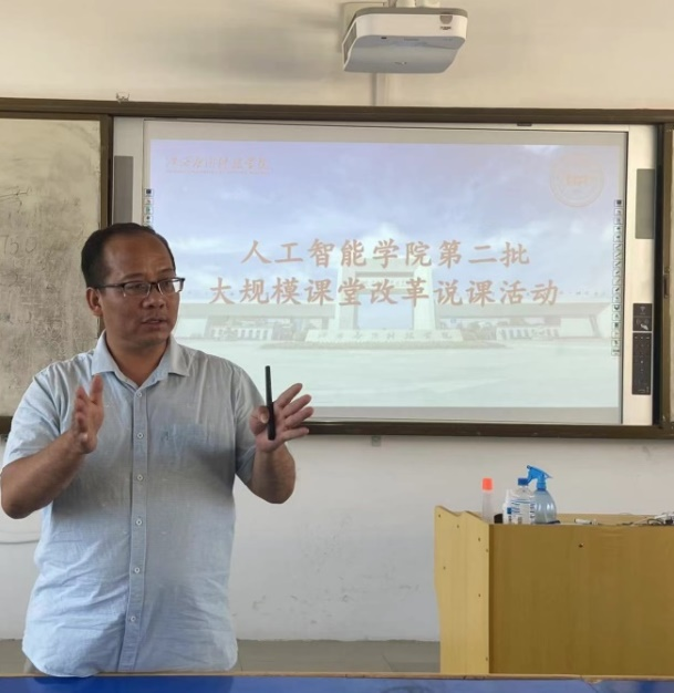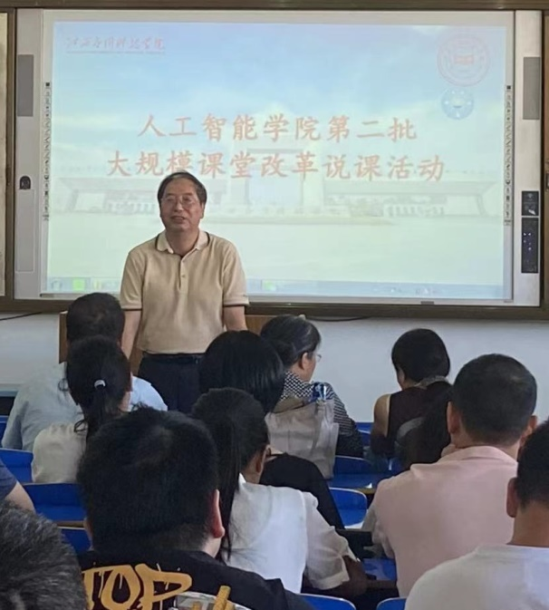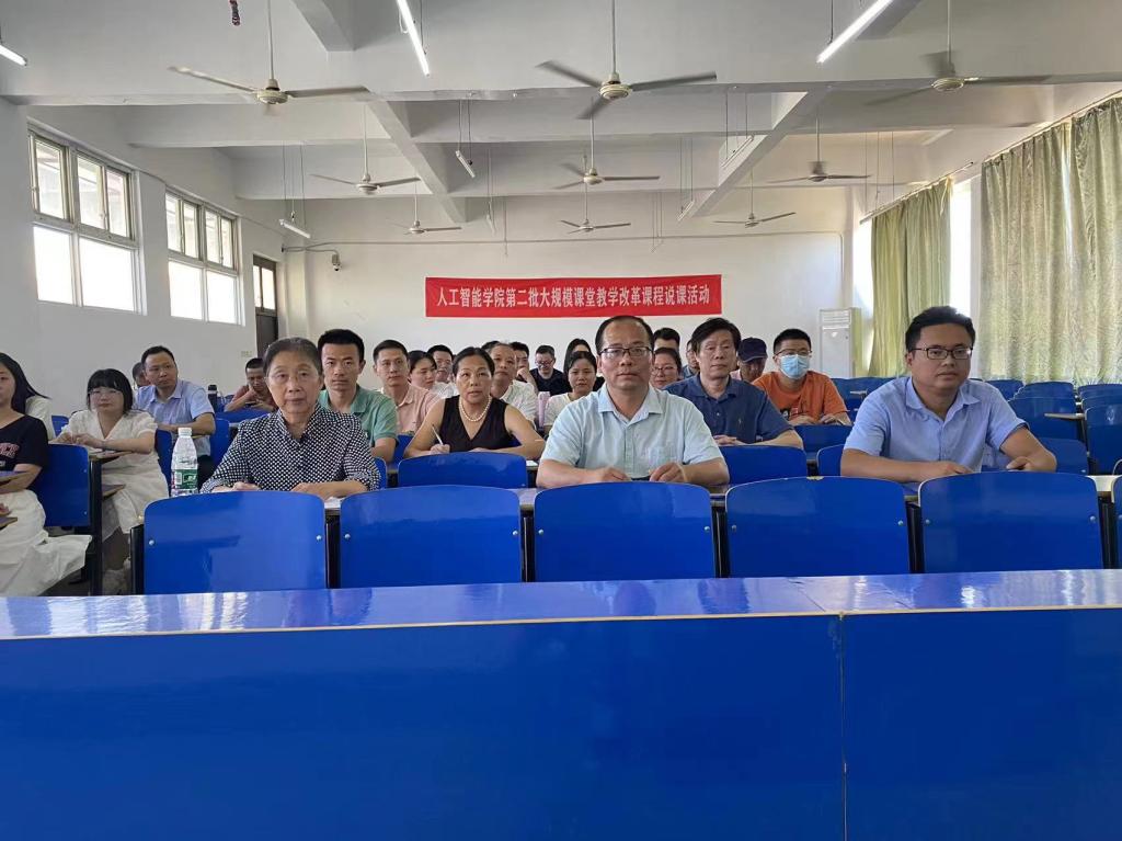 依照《72886必赢网站关于开展大规模课堂教学改革的实施方案》的要求,推进教学改革与建设工作,更好地提升教学质量,促进学院专业的内涵建设,9月6日下午,人工智能学院在三达楼503、504教室举行了第二批大规模课堂教学改革课程说课活动。副校长李建萍、院长李俊、副院长刘晔、副院长邓春华、专业带头人叶志清、专业带头人廖芳、教务科长张召志、实践科长马启科、各教研室主任、学院督导及全体专任教师参加了此次活动。