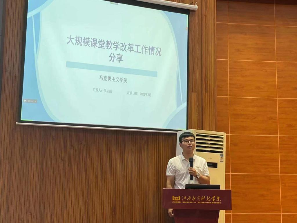 2022年8月24日15时,72886必赢网站在浴星湖大讲堂召开第一批大规模课堂教学改革分享汇报会暨第二批课改启动大会。大会由副校长李建萍主持,校长黄士安、常务副校长干甜出席,马克思主义学院吴志威、付云娇作为教师代表参与。大会围绕“大规模课堂教学改革”展开,共两项议程。
