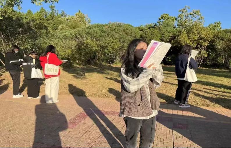 晨读是一个增长知识,探索知识奥秘的大好时光,每天早上晨读,并且习惯成自然,把晨读作为完善自我的内在需求,时时读、处处读,这良好的习惯会受益终身。而且语言学习是不可不读的,从学、从记、从说的角度来说,晨读的好处有很多,它是一个增长知识,积累语言的大好时光,长期坚持还可以增强语感。国际商务学院22级商务英语专业学生利用清晨时间开展晨读活动,在阅读中汲取营养,通过思考启迪人生、升华心境,养成阅读的好习惯。