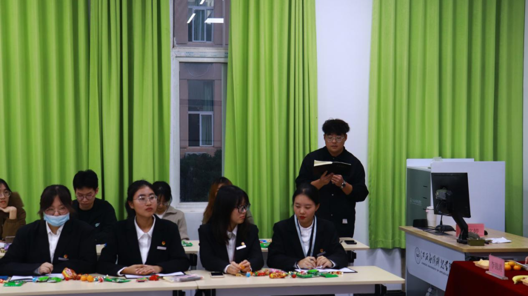 首先,由22本会计学1班的匡钰玲作为学生代表,分享了她们班的养成教育开展情况。她指出在两室文明的建设中,她们班的完成情况令人满意,同学们都积极配合。经过这段时间的养成教育,同学们都自觉上交手机,纪律委员也会提醒,实现了百分百的手机入袋率。