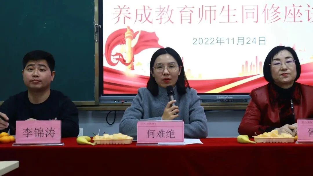 接着,是22本会计学4班的养成教育负责人李炳辉发言,他在本次师生座谈会提出了他们班在推进养成教育中发生的改变。他指出,在本学期开展养成教育以来,同学们的学习态度有了质的改变,班级的学习氛围也有了质的提高。