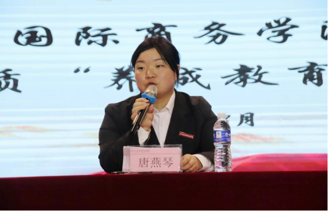 会议伊始,康思思老师报告了国际商务学院养成教育活动开展的相关情况,以及取得的相关成绩,并作出下一阶段国际商务学院在养成教育活动工程中的计划安排。国际商务学院可以通过严格科学规范的管理模式,注重文明礼仪的日常养成,结合养成教育活动和丰富多彩的实践教学,发挥学生社团和学生的主体作用,增强学生们养成教育的自觉性和主体意识。