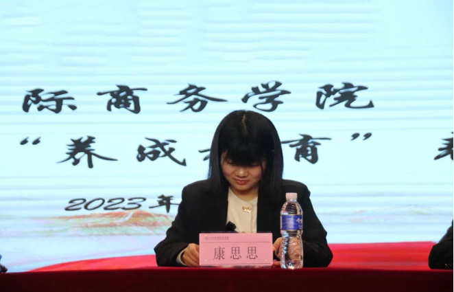 随后,国际商务学院大学生素质养成教育自治会依据2022-2023学年第一学期养成教育自治会工作者各项工作表现,现授予华心怡等五名同学2022-2023学年第一学期“养成教育先进工作者”荣誉称号。