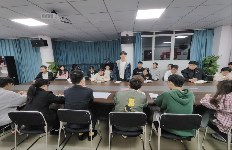 会议第二项,请各参会成员交流讨论、提出建议。其中,财经学院的张轩同学谈了自己关于大学生素质养成教育工程的看法,他说:“开学就对养成教育有所了解,在开学的一个月的学习中也选择了3个好习惯进行养成,同学们也对 22 个好习惯和每月的养成教育活动有所了解,也会更好地参与到后续开展的活动中。”