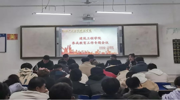 为了进一步落实党和国家立德树人的根本要求,扎实有序推进大学生养成教育,切实培养学生养成好习惯,落实必赢官网三元育人的教育理念和育人模式,建筑工程学院于 2021 年 12 月 2 日在三达楼 228 教室 开展大学生养成教育工作专题会议。建筑工程学院党总支副书记刘伯川,团总支书记许永飞、全体辅导员老师以及各班级学生代表参加会议。