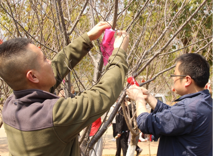 党总支副书记殷南琰带领同学们为树木松土,在小彩旗上写下自己的心愿挂在树枝上。三月在樱花林下,师生们放飞梦想,放飞希望。俗话说得好:十年树木,百年树人。希望老师用真情培养学生,希望艺设学子能茁壮成长,在艺设里成长成才,相互扶持,相互帮助。一枝独秀不是春,百花齐放春满园,对别人所给予的帮助心存感激,懂得回报,充分用好老师的教学资源,感老师的培养之恩,师生共养共修互助联盟,相互促进,共同成长,充分践行着“感恩”精神。